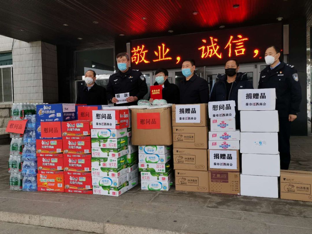2月20日,秦皇島市江西商會會長曾勝文帶領商會會員慰問抗疫一線山海關公安分局執勤交警。面對突如其來的新冠肺炎疫情,一場沒有硝煙的公共疫情防控阻擊戰悄然打響。疫情就是命令,防控就是責任。秦皇島市江西商會全面貫徹黨中央國務院重要指示批示精神,堅決落實省委省政府和市委市政府關于疫情防控的各項決策部署,在市工商聯和市工商聯非公商(協)會黨委的統一部署下,廣大會員積極參與疫情防控工作,為打贏疫情防控阻擊戰,向各級組織捐款捐物。截止到2月20日止,共計捐贈款物258200元。作為秦皇島市江西商會會長單位——秦皇島市天暉塑料有限公司,在董事長曾勝文的領導下,先后向秦皇島民建市委市直商貿支部捐贈特殊會費6萬元,向市衛健委捐款10萬元,以個人名義向市十字會捐款2000元,并幫助有需求防護用品單位購買口罩30000支,在商會組織的捐款中捐款1萬元,價值8000元的防護服30套、護目鏡30副。