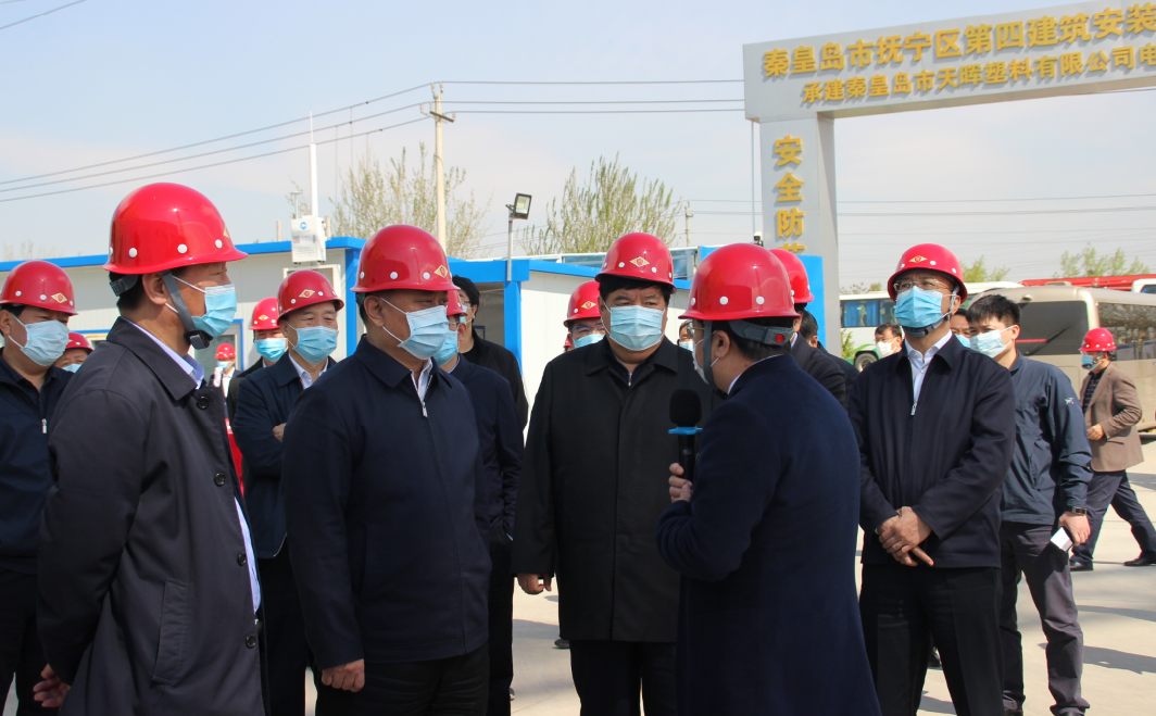 4月24日上午,由秦皇島市市委書記朱政學(xué)、秦皇島市市長張瑞書帶領(lǐng)市領(lǐng)導(dǎo)班、河北省第四督查組主要負(fù)責(zé)同志、各縣(區(qū))黨政主要負(fù)責(zé)同志組成的100余人的考察觀摩團(tuán),參觀了我公司正在施工的天暉塑料電商產(chǎn)業(yè)園項(xiàng)目。