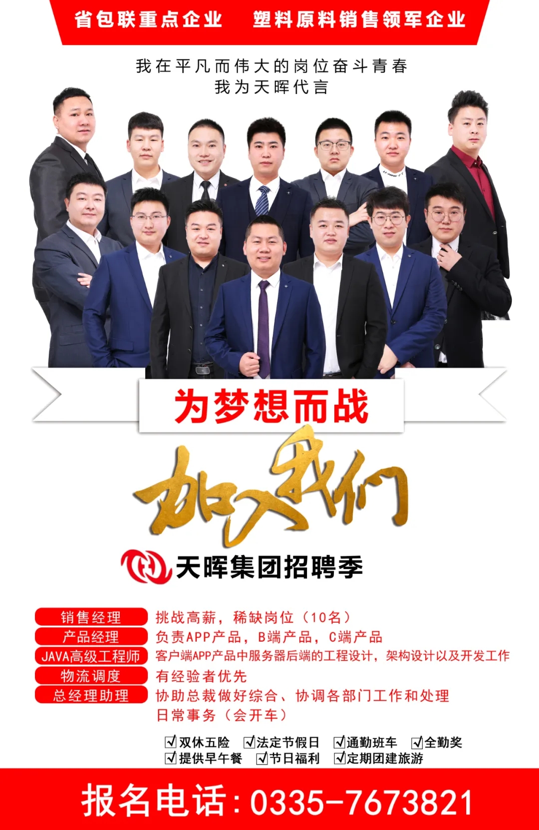 7月21日,秦皇島市人力資源和社會保障局副局長張斌帶隊蒞臨天暉集團,深度了解企業人才需求。集團董事長曾勝文、總裁杜霜、財務部總監姜晟、人力資源部高管陪同接待。張斌局長一行首先詳細了解天暉集團目前運營重點項目,并針對各項目運營過程中高科技人才需求提出了指導性的意見和建議。對于天暉電商物流園項目給予了肯定和支持,屆時該項目可提供1000個以上的就業崗位,吸引大批高精尖人才駐足秦皇島。
